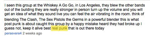 I got into punk in 6th grade with Green Day and Rancid because we were into skateboarding and already feeling like outcasts. Anything on Fat Wreck was obviously sweet and I didn't care much about the Sex Pistols because it wasn't that fast. The waves of punk after the 2nd are probably not cut and dry, but after the mid 90's I was also into "real punk". I think that during this time to combat the pop-punk trend, punks who were trying to keep it real were playing a mix between 1st and 2nd wave and that sounded like this:
